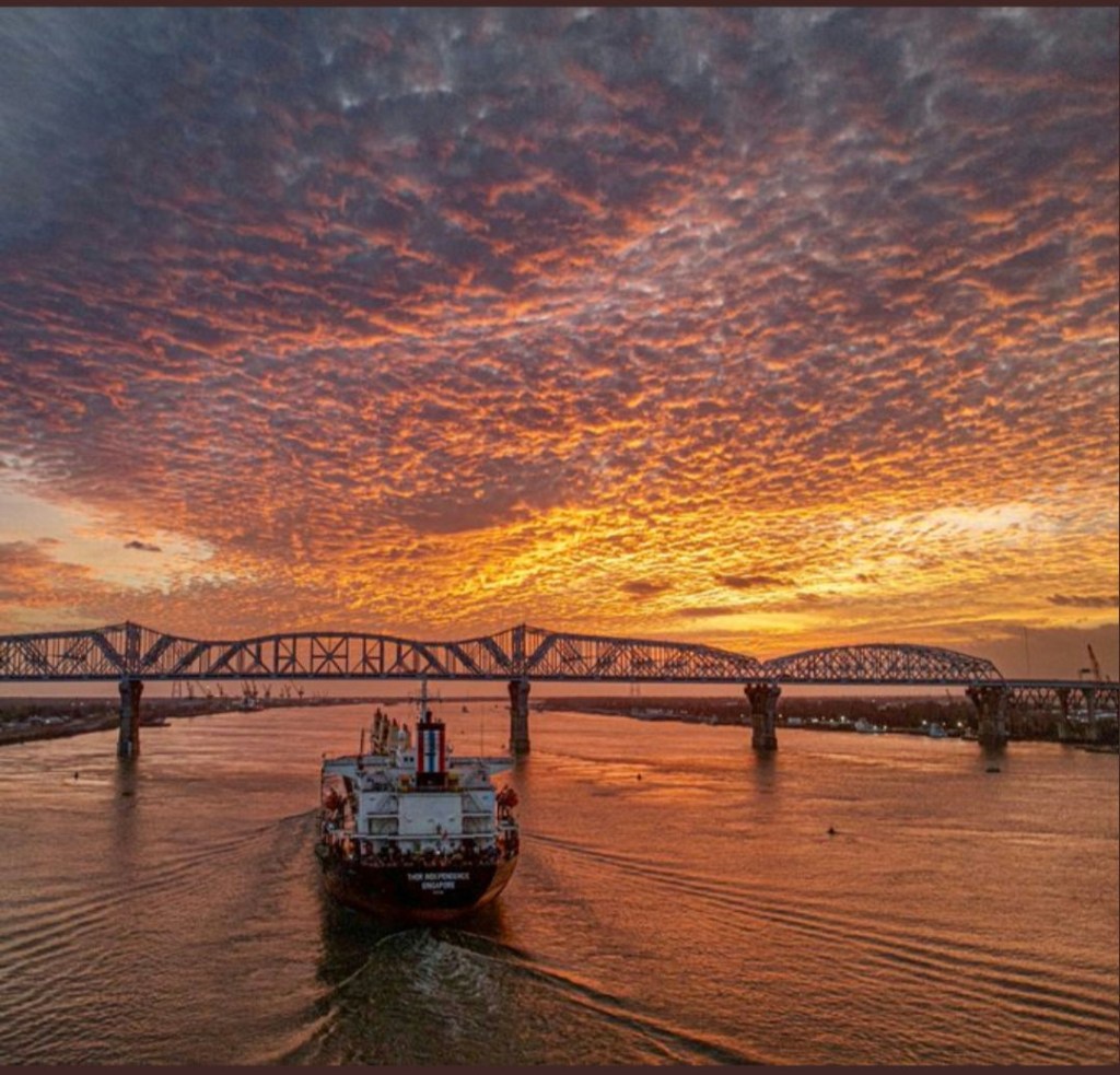The Huey P. Long Bridge at sunset, photo credit Marco Rasi