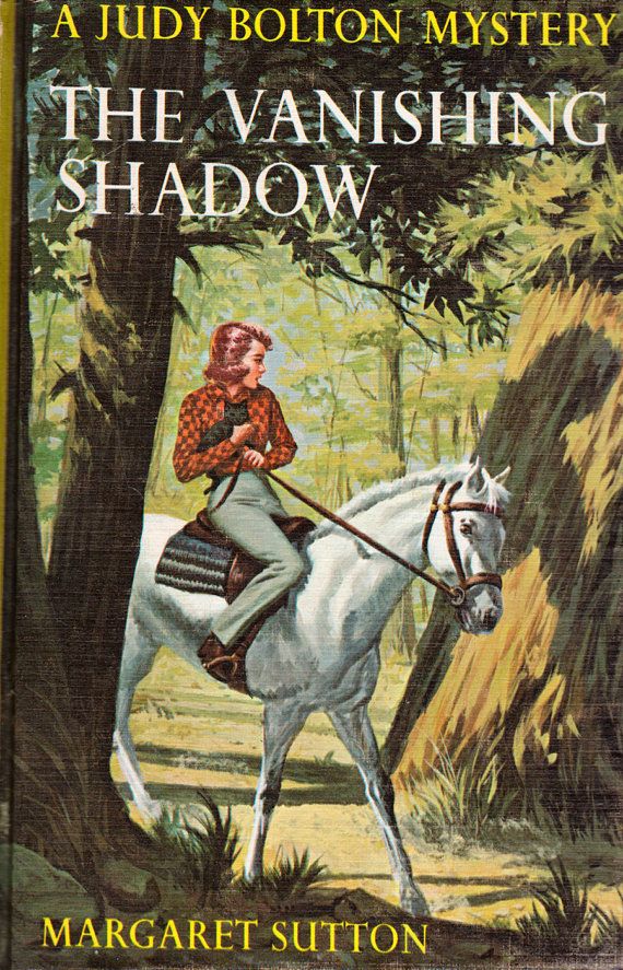 I discovered Judy Bolton at Bargaintown USA, which eventually became Toys R Us. Their book wall, which was the back wall of the store, had every kids’ series in print at the time. I just stared at the wall in wonder, wondering how I would ever choose just one book out of the vast array of choices. I liked the title The Vanishing Shadow, and my parents–eager to get me to read about boys instead of girls–didn’t notice it was a “girls” book because the spine was green–Nancy Drew was a very bright yellow, and they’d trained themselves to watch out for those telltale yellow spines in time to negate the purchase. Like most kids’ series, the Judy Bolton books had never been revised or updated; they weren’t Stratemeyer Syndicate books and had a single author, for one (Sutton always felt Grosset & Dunlap “favored” Nancy Drew in marketing over Judy Bolton; and that her series would have been just as successful with the same marketing Nancy got), and so this initial book, originally published in 1932 (!!!) seemed a bit old-fashioned. I was also a bit surprised because Judy was kind of unpleasant and unlikable. She was especially mean and vicious to her younger brother Horace–who was timid, shy, and weak; dismissed as a coward by everyone including his sister–and she was incredibly bored, staying at her grandmother’s–which I could also related to as I often was bored when I spending the summer at my grandmother’s. Judy and her family actually lived nearby in the small city of Roulsville, which sat in the shadow of an enormous dam and reservoir. Judy overhears some suspicious characters talking about a weakness in the dam–and so she entertains herself trying to figure out what’s going on. There’s a very exciting climax where the dam itself does rupture, and Horace rides a horse into town to warn everyone to flee for safety, becoming in the process the hero of the Roulsville Flood. This surprising act of heroism for the formerly “cowardly” Horace has a strong effect on him, and he becomes a completely different person from then on–strong, confident, courageous. Judy also solves her mystery, involving shoddy construction of the dam and corruption, and all’s well that ends well–except the Boltons are now homeless.