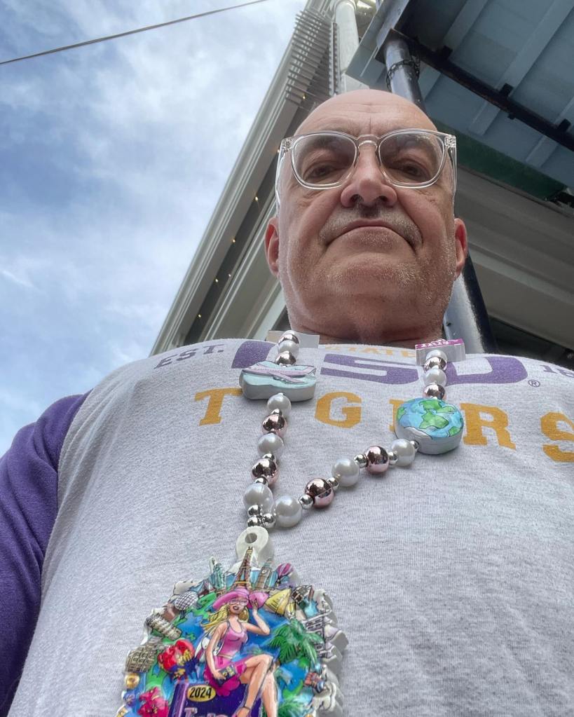 Another casual observation from the route: there were an awful lot of women out there in full “glam”. Many of them were young and pretty, some were older and pretty, and some had made interesting choices in clothing and make-up and hair options. I finally realized, to my delight, that they were simply costuming as The Real Housewives of Metairie.1