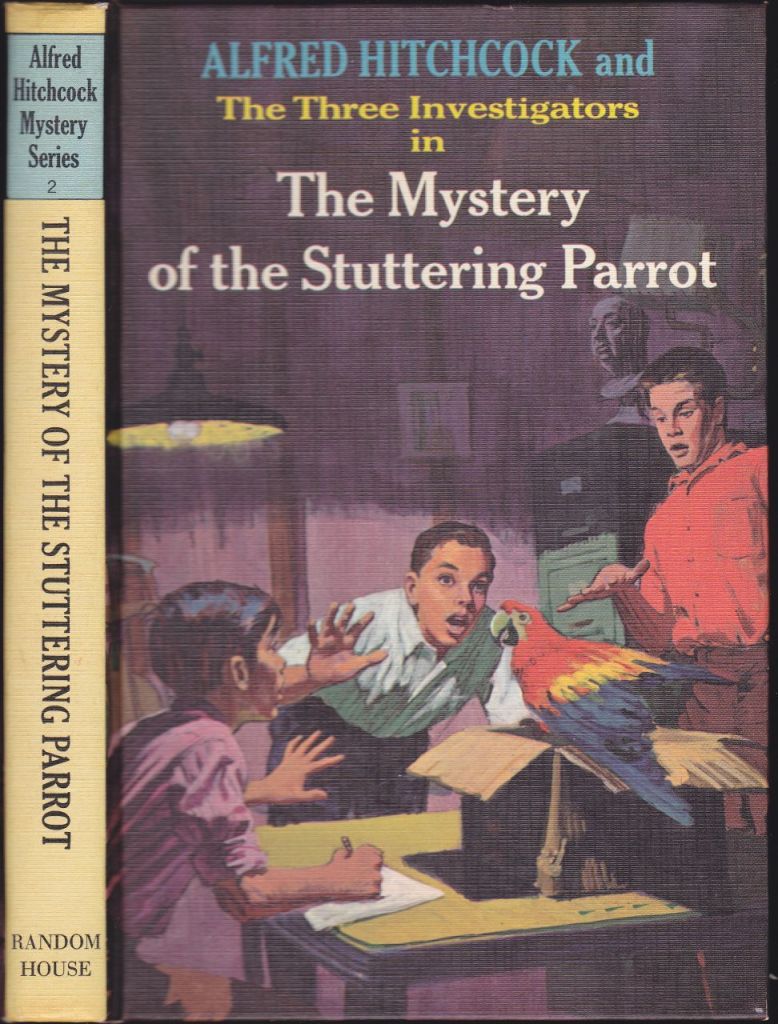 The first two series books I ever read were not from either the Nancy Drew or Hardy Boys series; they were from the Trixie Belden series (The Red Trailer Mystery) and The Three Investigators (The Mystery of the Moaning Cave). Both series wound up being favorites of mine once I eventually got back to them and remembered them; I remember buying five Trixie Belden books at a store at the Ford City mall in Chicago, and I got my first five Three Investigators books from a Toys R Us, I think in the Chicago suburb of Berwin? The two series weren’t as ubiquitous or available as Nancy Drew and the Hardy Boys; which made finding more of them a kind of triumph for me. I’ve already blogged about The Secret of Terror Castle, which was the first Three Investigators book in the series, so I won’t cover that one again. But recently I sat down and reread the second book in the series, The Mystery of the Stuttering Parrot, and remembered again why I love this series so much.