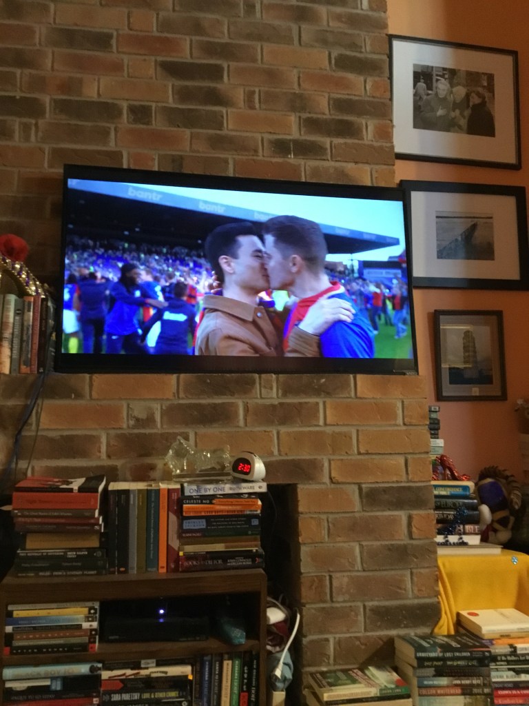 And the scene above? It’s also a callback to the conversation between Colin and Trent. Colin says he doesn’t want to be a spokesperson, doesn’t want any fuss, just wants to live his life and “be able to kiss my guy after a win, like the other fellas do with their gals.” And after the biggest win in the history of the team, he gets to do just that.