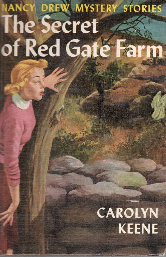 Nancy Drew wasn’t the first kids’ sleuth series I discovered (Trixie Belden’s The Red Trailer Mystery and The Three Investigators’ The Mystery of the Moaning Cave came first), but when I was in the fifth grade, sometime between 1969 and 1970, we had a table of books in the back of the room that had belonged to the (now grown) children of our teacher. I was already reading mysteries checked out from the library or ordered from the Scholastic Book Fair, so when I saw The Secret of Red Gate Farm there on the table, along with the banner NANCY DREW MYSTERY STORIES, I couldn’t pass it up.