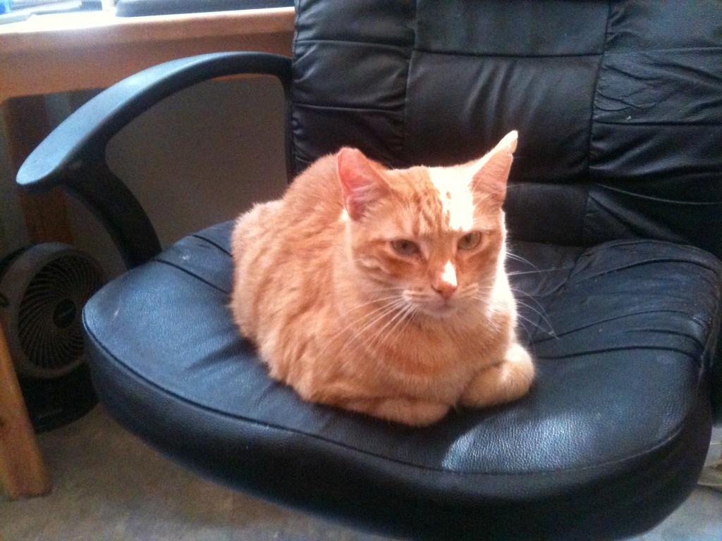I went to the Cat Practice to pick up Skittle’s ashes on a Thursday after work. While I was waiting–I always have to wait whenever I am there–I always go around and look at the cats they have looking for forever homes (while I always hate having to leave without bringing them all home, it’s also kind of sad if there aren’t any there). In a cage behind the front desk was an orange boy, and according to the label on his cage his name was Texas and he was two years old. I walked over, and he was so friendly and loving–purring and rubbing against my hand–that I seriously thought I should bring you home with me, sweet boy,