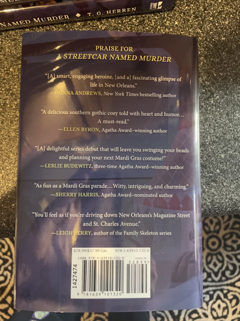 I had actually tried writing a cozy series before–I had this great idea for one, about an English professor at a university in a fictional Louisiana town on the north shore (based on Hammond); I called it A Study in Starlet and wrote a strong introductory chapter, trying to channel my inner Elizabeth Peters/Vicky Bliss; sarcastic but not bitchy, but it never got anywhere. I actually became rather fixated on my fictional Hammond (which I called Rouen, pronounced “ruin”, and I did want to call one of the books The Road to Rouen), which I may still write about at some point–I never say never to anything–but I am digressing. But I always had it in the back of my head that I should try writing a mainstream cozy at some point in my career. And this came about in a very weird way–it’s a long story–but I wound up pitching the idea I had to Crooked Lane and they offered me a contract, which was quite lovely. (Incidentally, I signed the contract electronically on the Friday before Hurricane Ida; the last email I got from Crooked Lane that Friday afternoon after signing the contract said you’re going to be getting some emails from the team next week so keep an eye out for them and welcome aboard! So, of course the power went out on Sunday morning…)